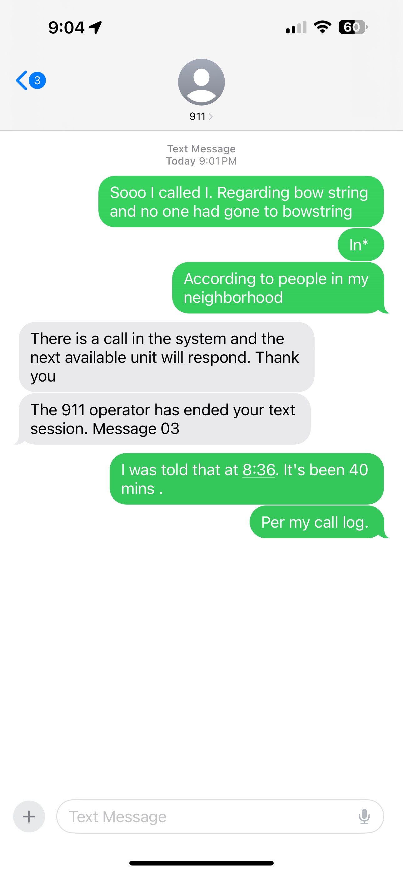 See attached. You can just text 911. I called it in at 8:36 and no one has