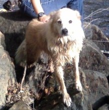 Quixote, a long-haired, medium-sized cream/white-haired dog (pic