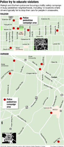 dangerous streets for pedestrians, Triangle police departments are pouncing on drivers who
